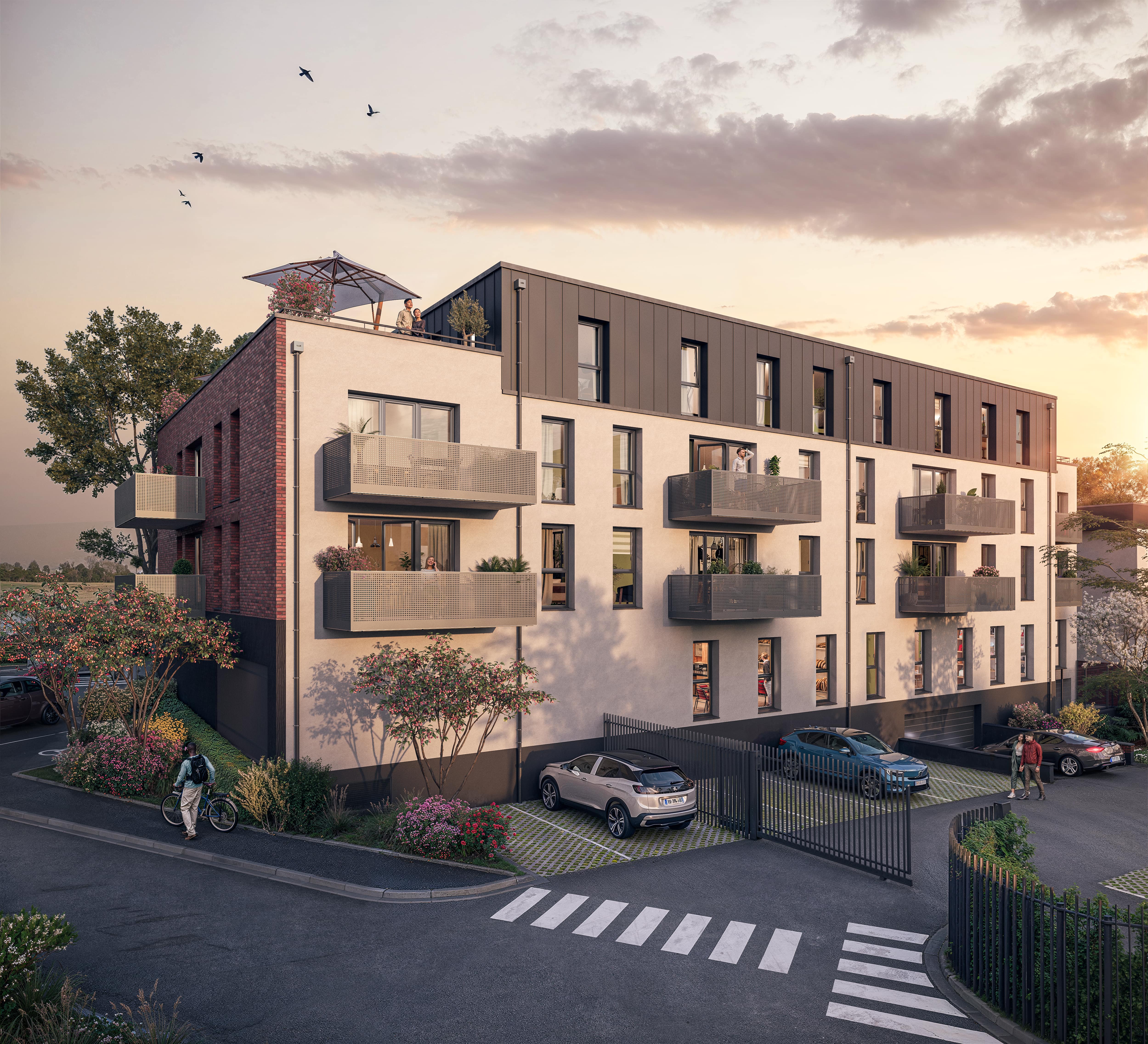 Adéquat - Résidence contemporaine et qualitative au coeur d'un environnement verdoyant - Adéquat est une résidence moderne et intimiste, conçue pour s'intégrer avec harmonie à l'entrée de la ville. Implantée dans un cadre végétalisé, elle bénéficie d'une architecture soignée et de matériaux durables, offrant un ensemble homogène, élégant et parfaitement adapté à l'échelle du quartier.