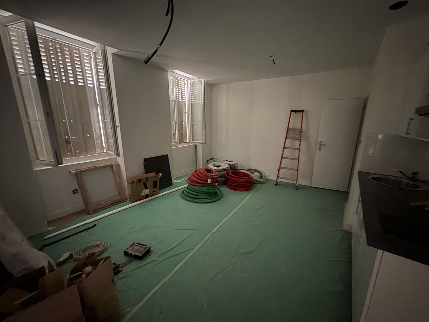 Cet appartement de 24 m² est proposé par un marchand de biens via une agence immobilière. Il est actuellement en cours de rénovation complète et sera livré refait à neuf : isolation, fenêtres, VMC, électricité, plomberie, murs, cuisine et salle de bain. Le logement bénéficie d’un parquet bois et d’une belle hauteur sous plafond, ce qui lui confère beaucoup de charme.