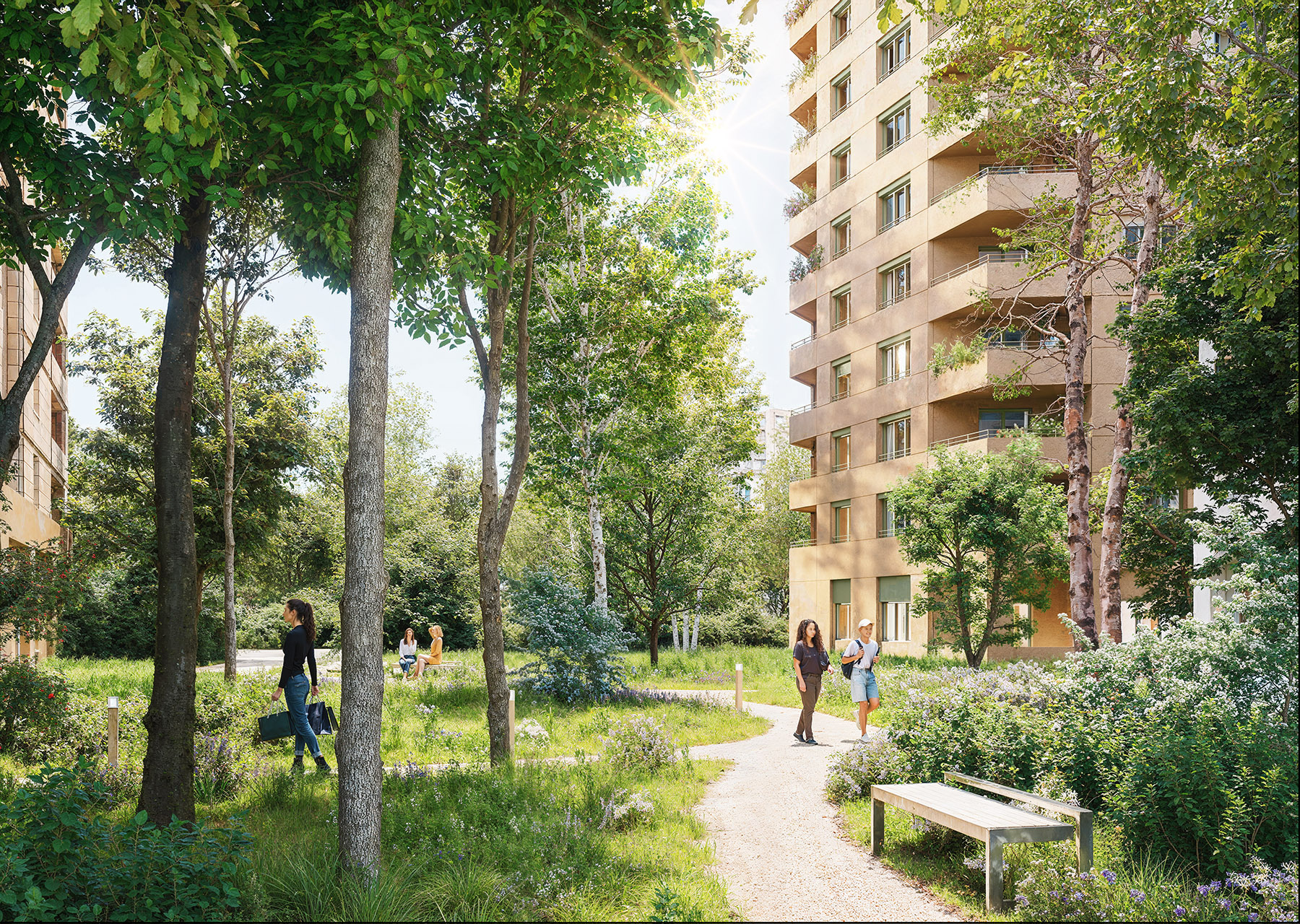 Description de l'opération : Résidence contemporaine ouverte sur un parc urbain paysager d'environ 1 hectare. Architecture élancée avec hauteurs étagées favorisant les vues dégagées et la luminosité naturelle.