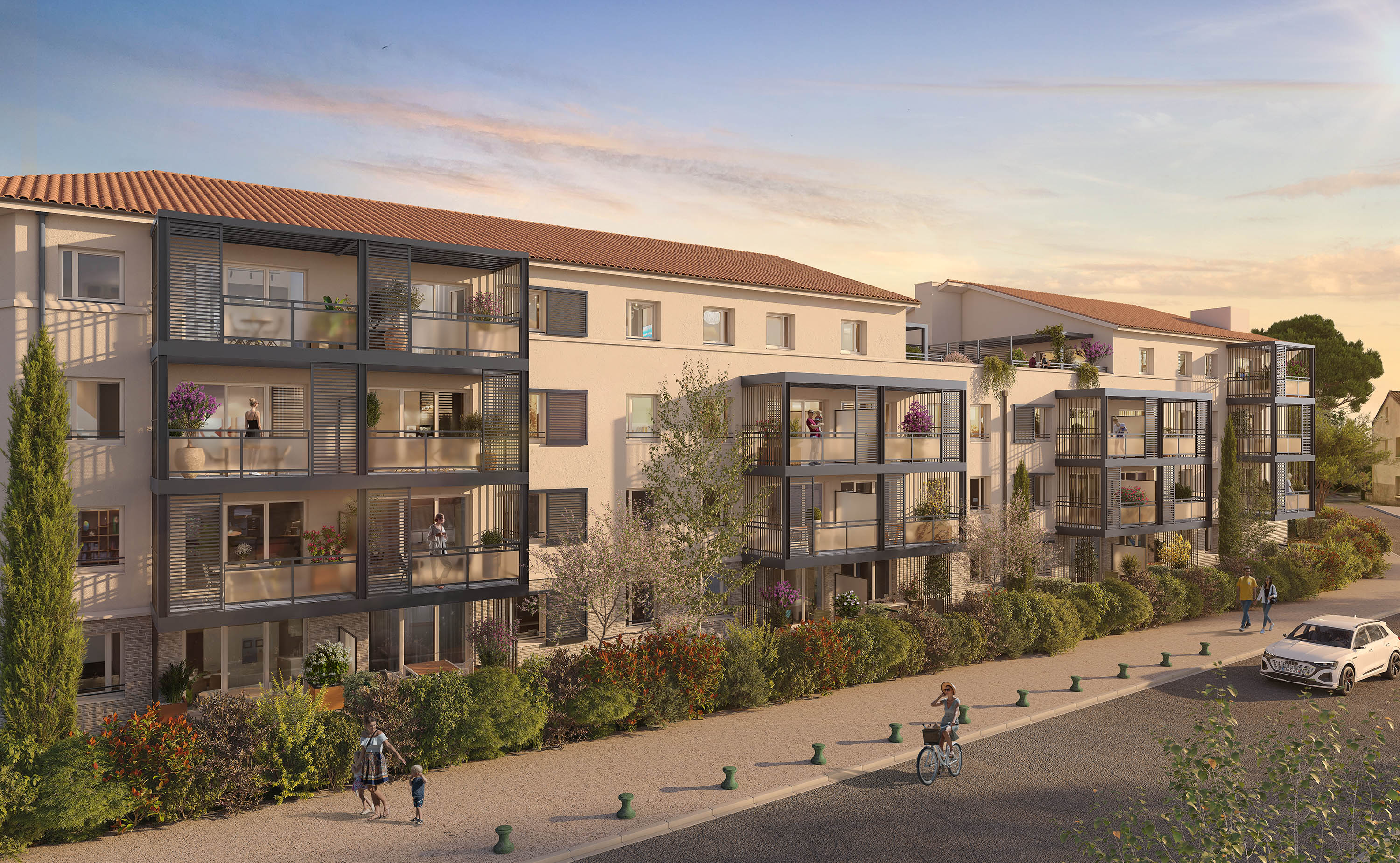 Située à moins de 15 minutes au nord de Toulouse, Lespinasse bénéficie d’une excellente desserte routière avec un accès rapide à l’autoroute A62 et au périphérique toulousain. Avec ses quelques 3 000 habitants, Lespinasse séduit par son esprit de village et son cadre de vie agréable aux portes de Toulouse. La commune offre un environnement harmonieux grâce au canal latéral à la Garonne, au lac du Bocage et au parc de Gagnac tout proche. Elle dispose également d’établissements scolaires et de nombreux équipements : Espace Canal des 2 Mers, complexe sportif, médiathèque, centre culturel et piscine de l’Hersain à proximité. À quelques minutes, la zone commerciale de Fenouillet complète l’offre. La résidence « Ondea » est située rue du Boulodrome dans le coeur de Lespinasse. Elle se compose d’un bâtiment de 3 étages, implanté en retrait pour créer une percée visuelle et valoriser les cheminements piétons dans un cadre paysager soigné.