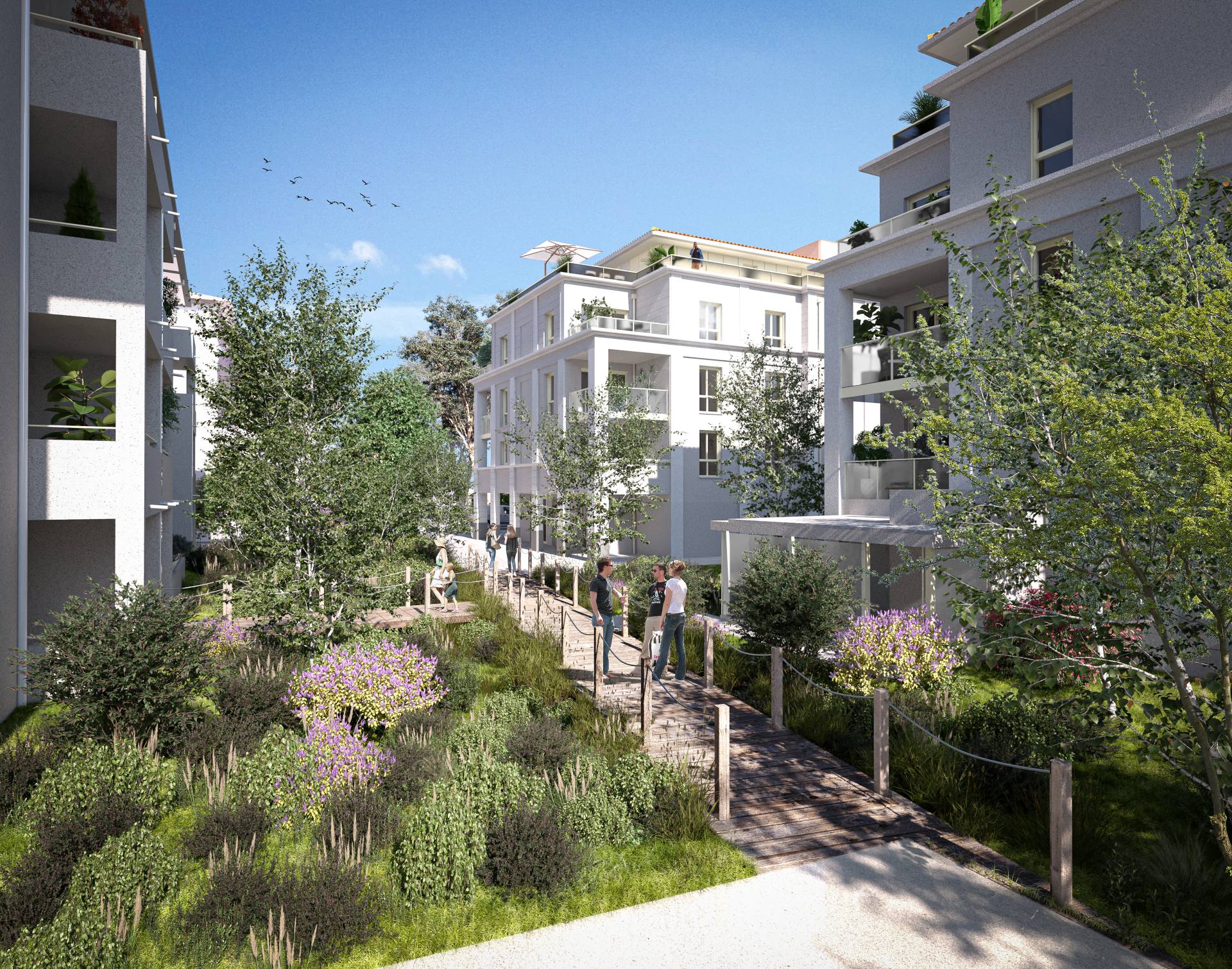 OSTREA dispose d'un cœur d'îlot végétalisé qui favorise la fraîcheur et la biodiversité, tout en apportant calme et sérénité à ses résidents.